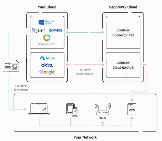 In the past, PKIs have been challenging to set up, but the good news is that’s just the past. JoinNow Connector PKI was designed to be an extension of your cloud environment, automating certificate enrollment and revocation based on real-time data from your Cloud Identity.